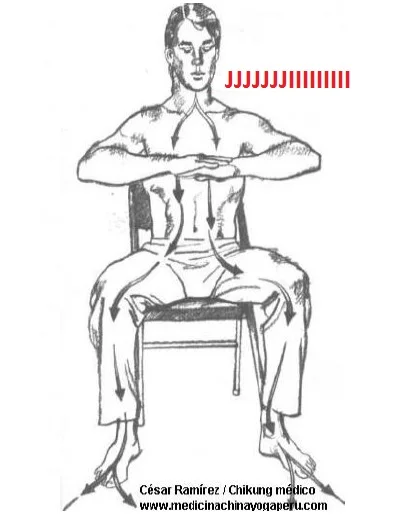 Inhale profundamente para luego exhalar el sonido CHUOOO mientras masajea la zona lumbar, perciba la eliminación de una enegía fría que sale de los riñones. Este sonido armoniza el sistema renal, elimina miedos y fobias y recupera la energía vital.